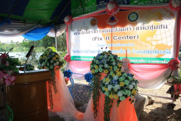 พิธีเปิดศูนย์ซ่อมสร้างเพื่อชุมชน (Fix It center) ศูนย์ที่ 1 ในวันที่ 6 มีนาคม 2556 ณ บ้านหนองสองห้องเหนือ