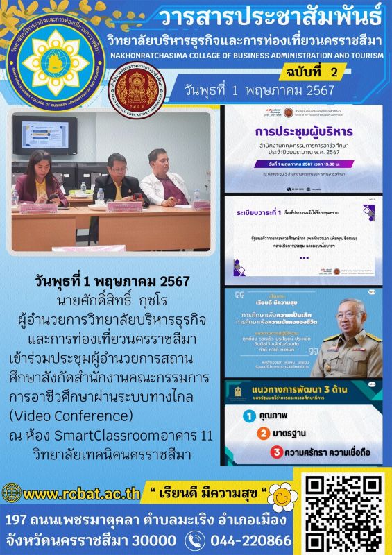 RCBAT-KM © 2013 วิทยาลัยบริหารธุรกิจและการท่องเที่ยวนครราชสีมา 197 ถนนเพชรมาตุคลา ตำบลมะเริง อำเภอเมือง จังหวัดนครราชสีมา 30000 โทร 044 - 220866 โทรสาร 044 - 220867 E-mail rcbat.mail@rcbat.ac.th
