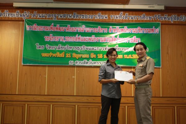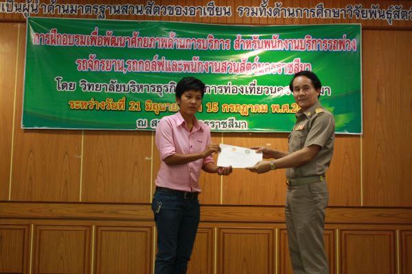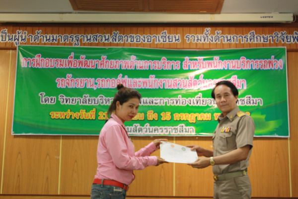 พิธีมอบเกียรติบัตรผู้ผ่านการฝึกอบรม เพื่อพัฒนาศักยภาพด้านบริการสำหรับพนักงาน ณ สวนสัตว์นครราชสีมา วันที่ 15 กรกฎาคม 2556