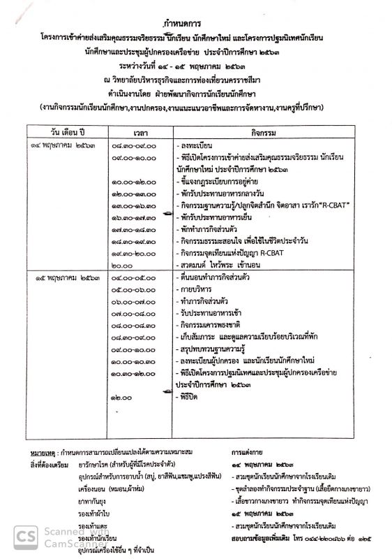 กำหนดการ โครงการเข้าค่ายส่งเสริมคุณธรรม นักเรียน นักศึกษาใหม่ และโครงการปฐมนิเทศนักเรียน นักศึกษาและประชุมผู้ปกครองเครือข่าย ประจำปีการศึกษา 2563