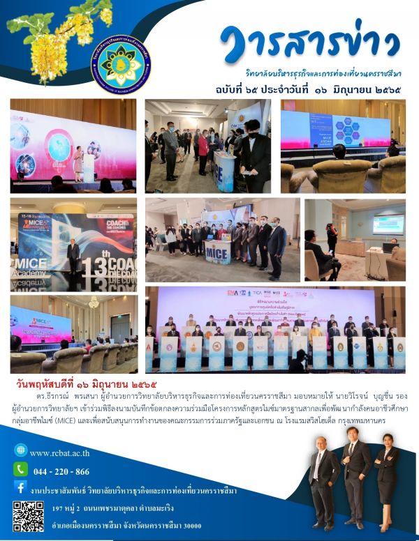 RCBAT-KM © 2013 วิทยาลัยบริหารธุรกิจและการท่องเที่ยวนครราชสีมา 197 ถนนเพชรมาตุคลา ตำบลมะเริง อำเภอเมือง จังหวัดนครราชสีมา 30000 โทร 044 - 220866 โทรสาร 044 - 220867 E-mail rcbat.mail@rcbat.ac.th
