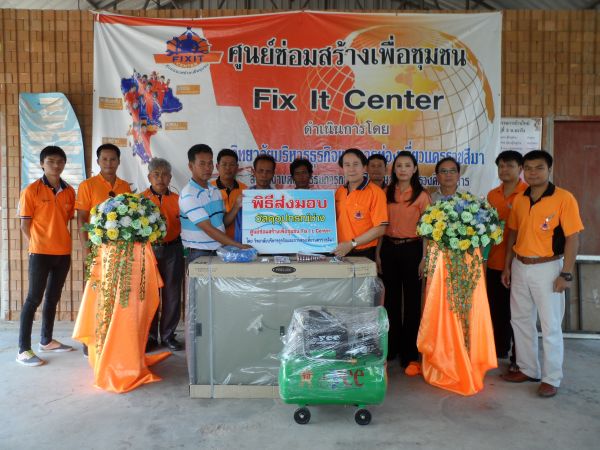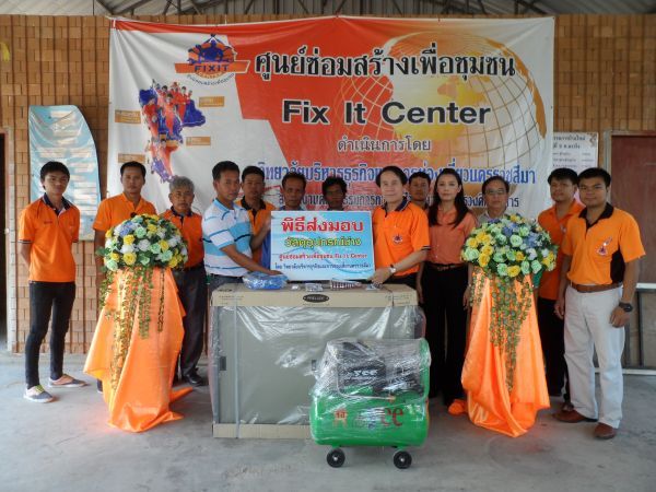 พิธีส่งมอบเครื่องมือช่าง ศูนย์ซ่อมสร้างเพื่อชุมชน (Fix It center) ศูนย์ที่ 4 ในวันที่ 25 มีนาคม - 1 เมษายน 2556 ณ บ้านใหม่ หมู่ 2