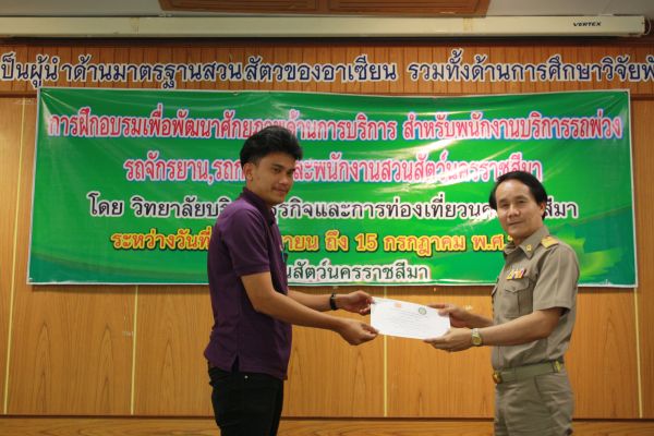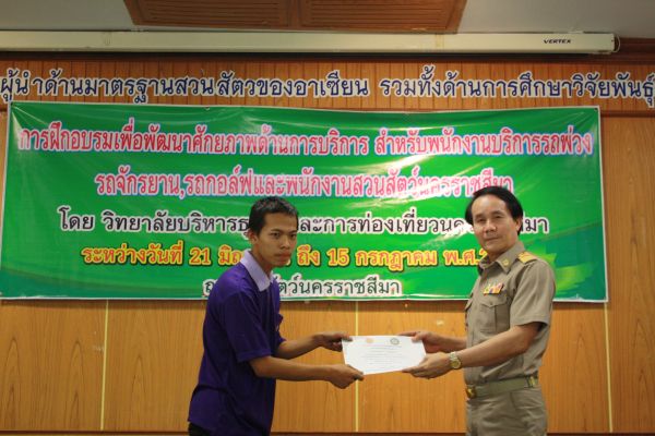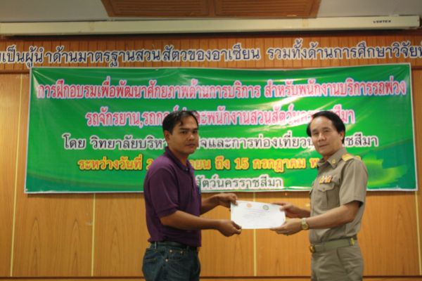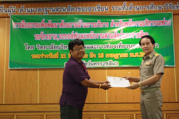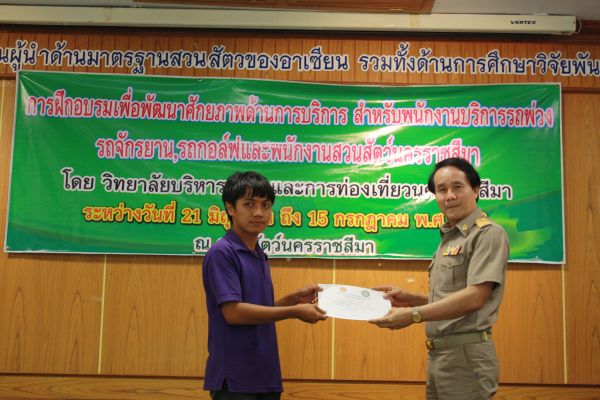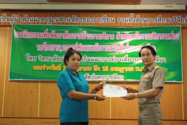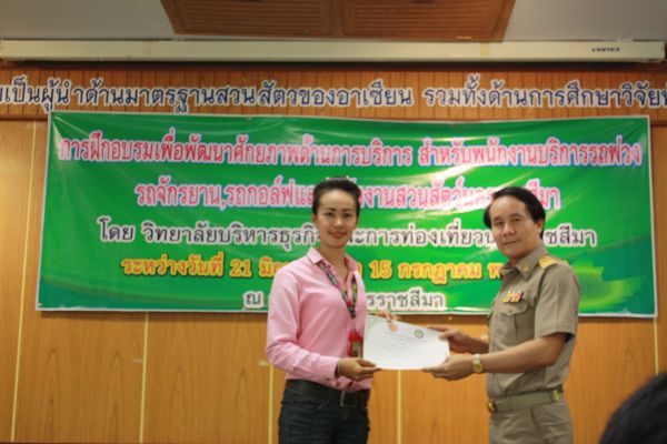 พิธีมอบเกียรติบัตรผู้ผ่านการฝึกอบรม เพื่อพัฒนาศักยภาพด้านบริการสำหรับพนักงาน ณ สวนสัตว์นครราชสีมา วันที่ 15 กรกฎาคม 2556
