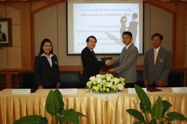 พิธีลงนามบันทึกข้อตกลงความร่วมมือ (MOU) ระหว่างโรงเรียนสุรธรรมพิทักษ์กับวิทยาลัยบริหารธุรกิจและการท่องเที่ยวนครราชสีมา วันที่ 15 สิงหาคม 2556